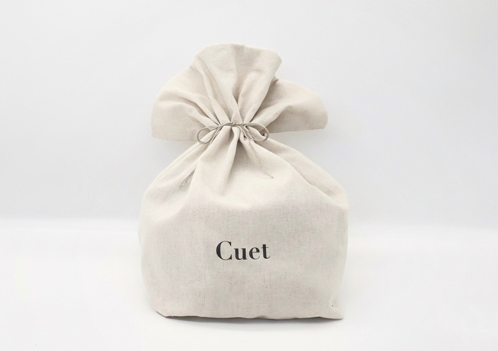 麻紐で巾着袋のように結んでお届けいたします。