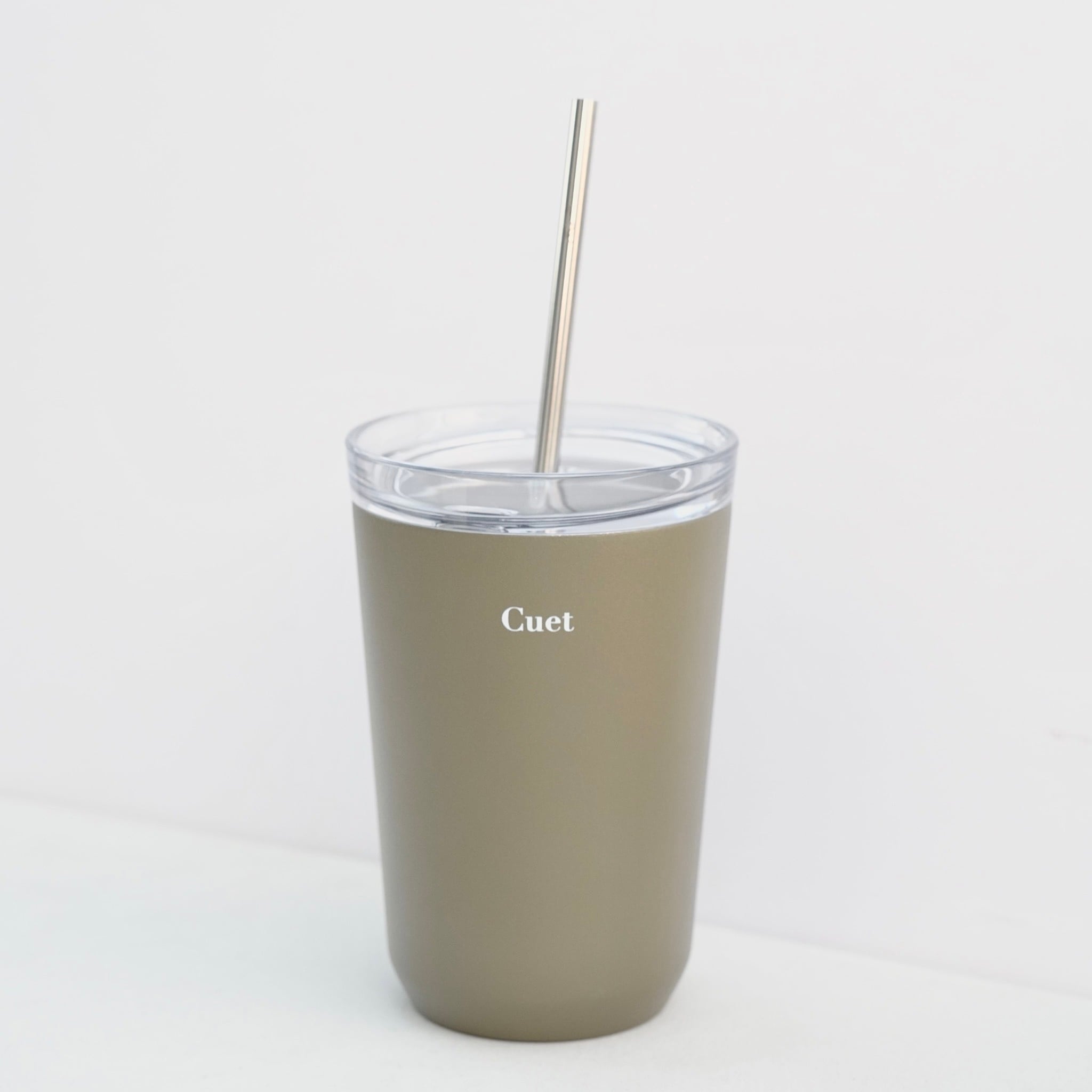 マットな触り心地に落ち着いた色合い、シンプルでミニマルなデザイン。ストローと共に、永く愛用したくなるタンブラーです。CuetとKINTOのロゴが入っています。